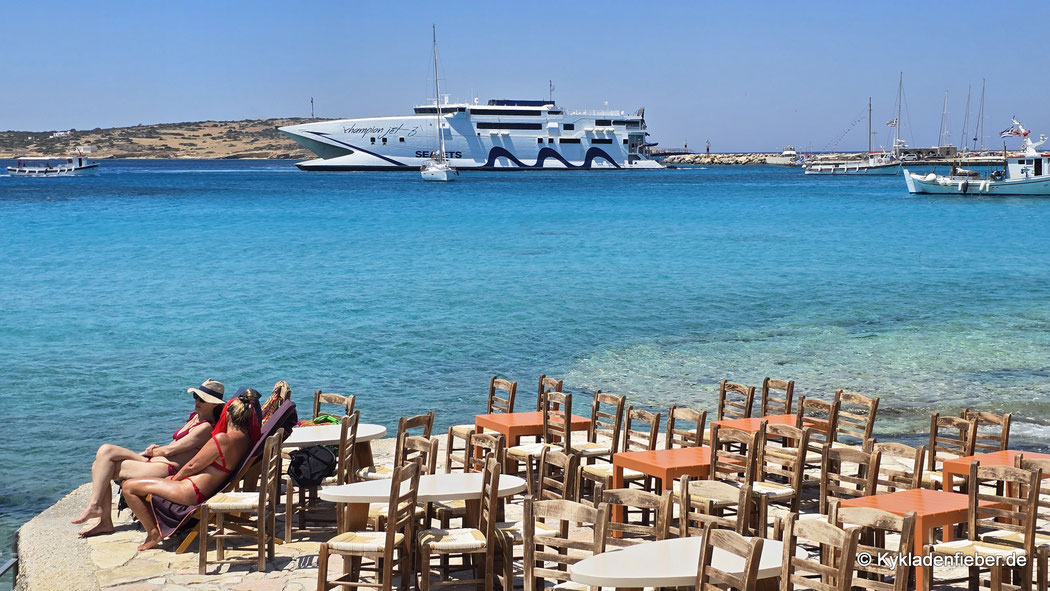 Und auch die Fährenanbindung ist hervorragend. Blue Star, HellenicHighspeed oder Charmpion Jet3 geben sich die Klinke in die Hand. Im Hafen ist halt immer was los, und die Hafentaverne hat gut zu